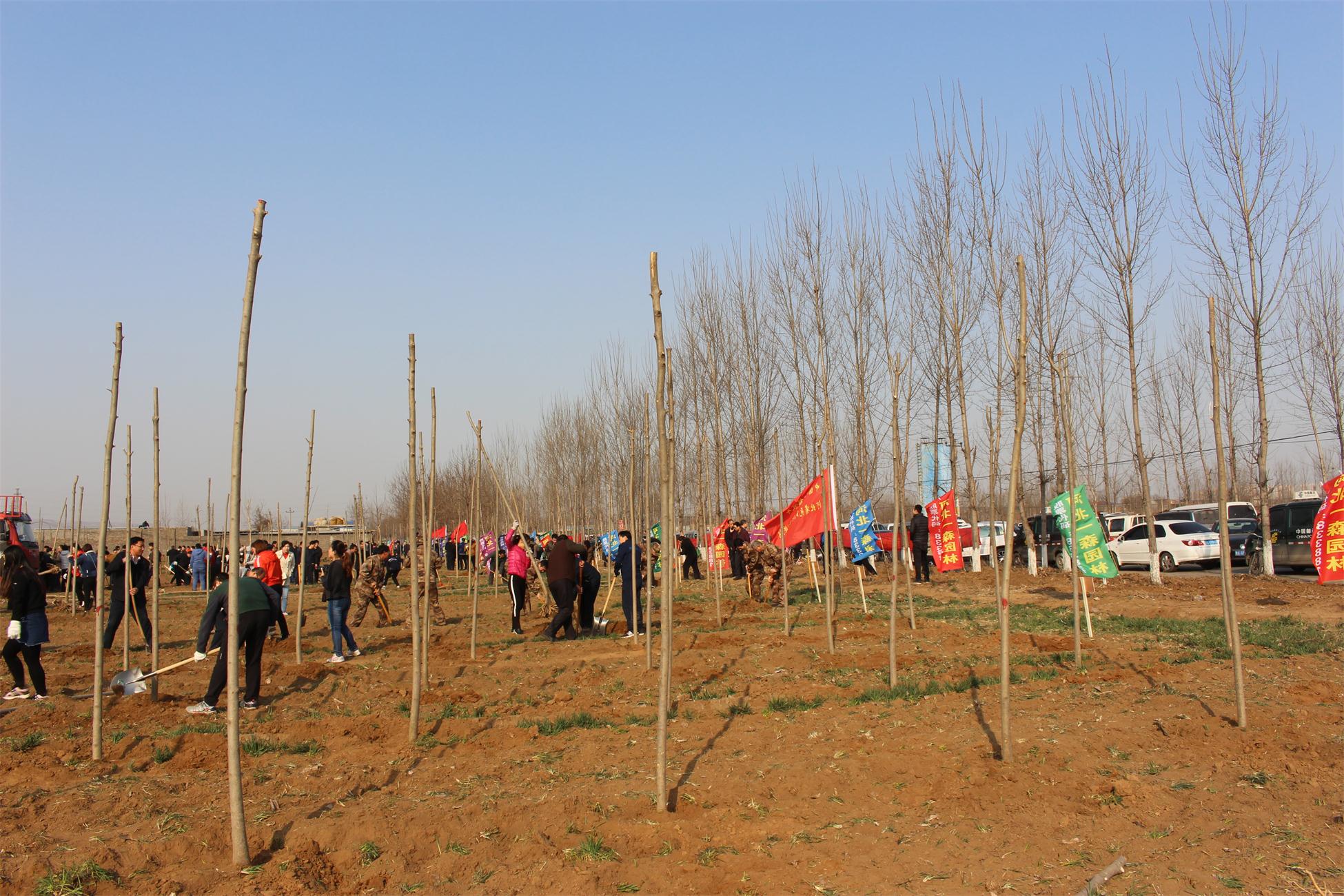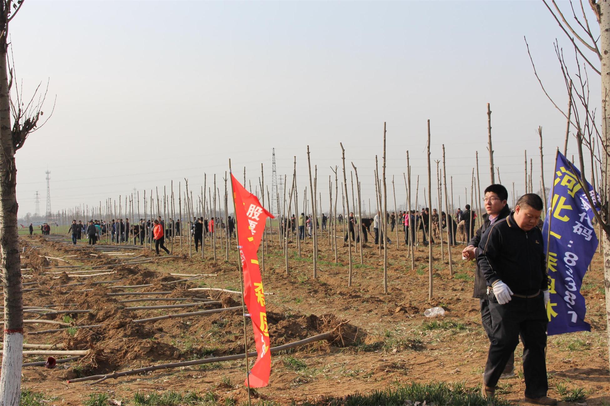 2017年3月12日,值植樹節(jié)到來之際,河北省元氏縣縣直單位1000多人到河北一森園林苗木基地義務(wù)植樹,規(guī)模龐大,現(xiàn)場氣氛活躍??h委書記鄭巍、縣長許盡暉,縣四大班子領(lǐng)導(dǎo)等在一森園林董事長耿軍林的陪同下一起參加義務(wù)植樹活動。河北一森園林提供白蠟、法桐、國槐等苗木20多萬株助力建設(shè)美麗元氏,并將繼續(xù)為建設(shè)美麗家鄉(xiāng)貢獻力量!